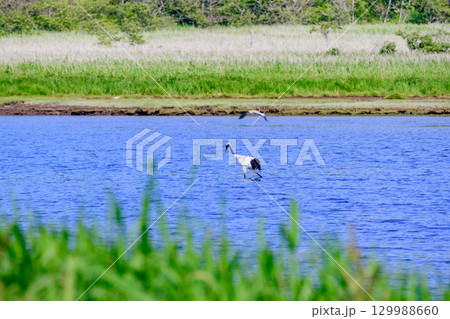 青空の下に広がる浜中町 幌戸湿原の汽水湖「幌戸沼」