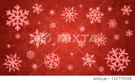 美しく輝く雪の結晶のイラスト壁紙(赤背景)