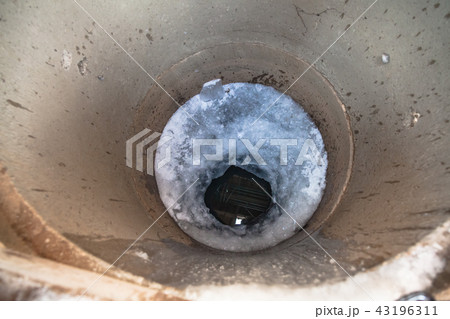 frozen water surface and ice hole in concrete well