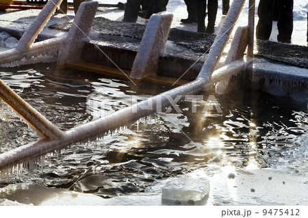 Ice cross in winter. Epiphany Orthodox holiday on a place of ice-hole swimming
