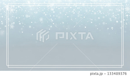 水色グラデーションに雪が降る幻想的な冬の背景デザイン