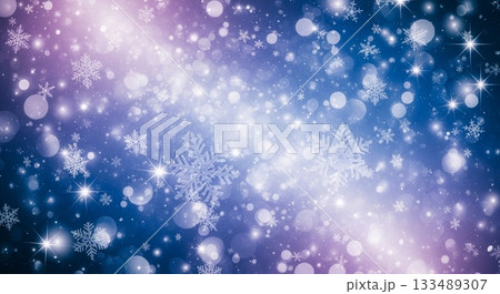 青と紫の光が広がる幻想的なスノーエフェクトの抽象背景