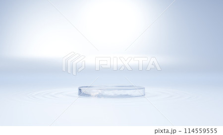 水面に浮かぶ氷の台座。波紋。3D(横長)