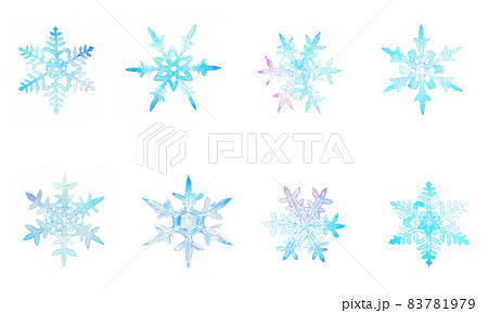 透明水彩で描いた雪の結晶のイラストセット素材