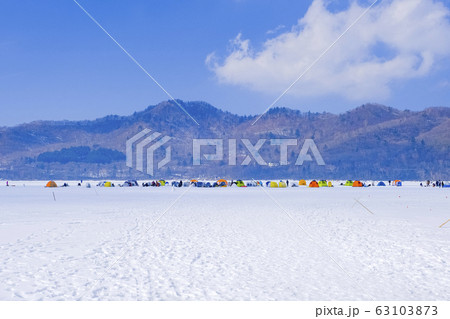氷上ワカサギ釣り ワカサギ釣り 北海道冬景色