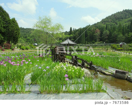永沢寺花しょうぶ園 「花しょうぶと六連式水車