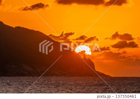 東シナ海に沈む夕日 屋久島の夕景(秋