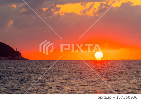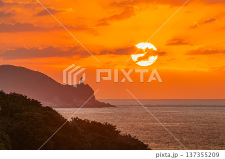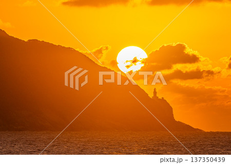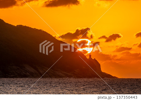 屋久島灯台と夕日 屋久島の夕景(秋