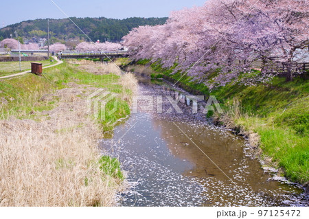 桜満開の宇治田原町、田原川河畔の桜の遊歩道「やすらぎの道」(京都府綴喜郡宇治田原町・田原川河畔)