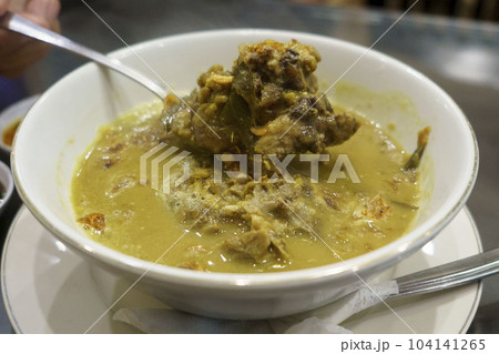 Thick Beef Soup with Green Beans served in a bowl in Ampel, Surabaya, Indonesia.