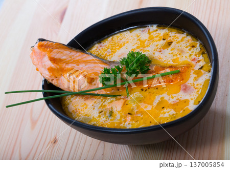 Cheese and salmon soup