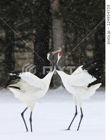 タンチョウ鶴の求愛ダンス-道東の冬景色