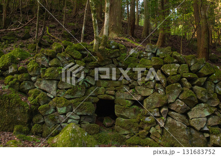 犬ヶ岳登山「登山道付近の炭焼き窯跡」