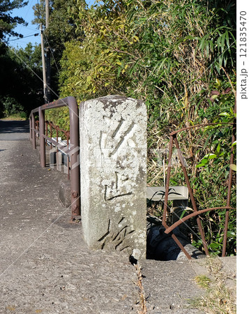 千葉県鋸南町にある石積み上路アーチ橋汐止橋の親柱明治28年