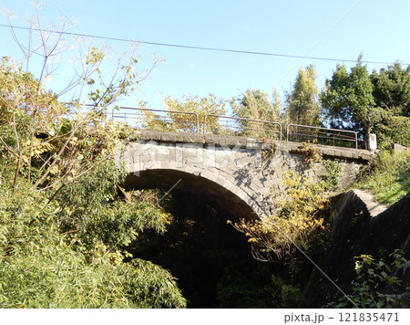 千葉県鋸南町にある石積み上路アーチ橋汐止橋の全景