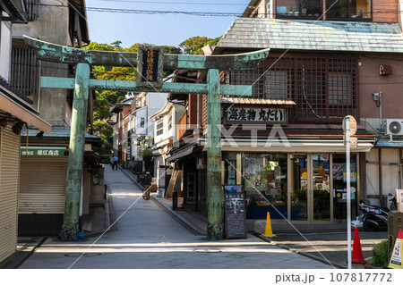 江島神社 朱の大鳥居 商店街を見渡せる風景