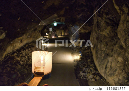 ろうそくの灯りを頼りにすすむ岩屋洞窟