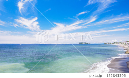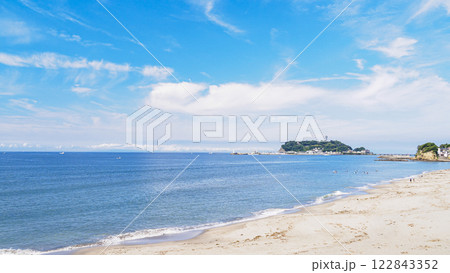 神奈川県鎌倉市 晴れ渡る七里ヶ浜と江ノ島