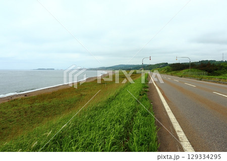 国道228号 日本海追分ソーランラインの鴎島方面の道路(北海道江差町)