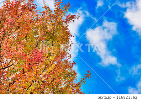 皇居 乾通りの美しい紅葉と青空(東京都千代田区)