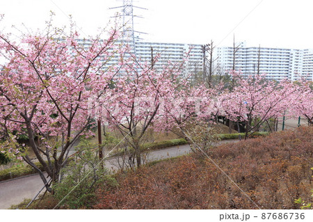 なぎさ公園(江戸川区南葛西)展望の丘 満開の河津桜