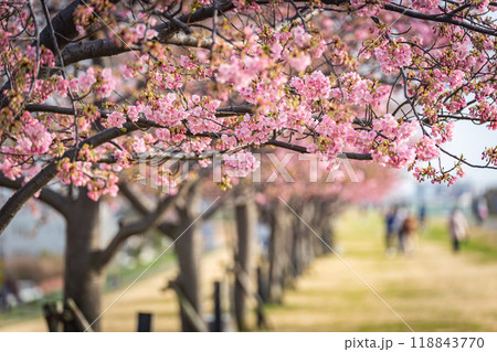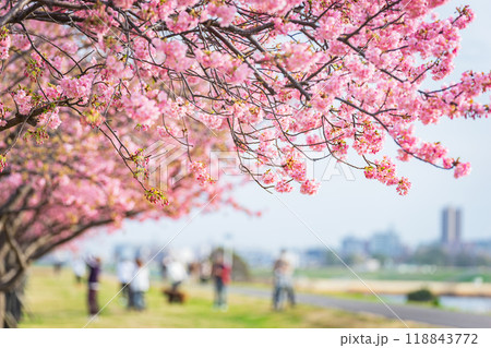 日本の春 千葉県市川南 江戸川沿いの河津桜