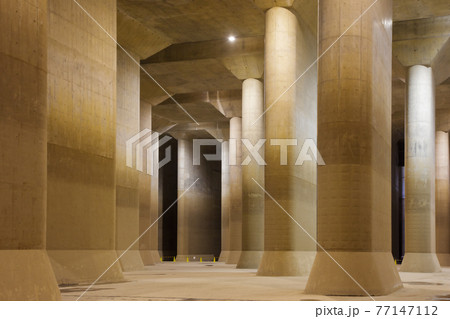 首都圏外郭放水路の調圧水槽の巨大柱(春日部市・埼玉)