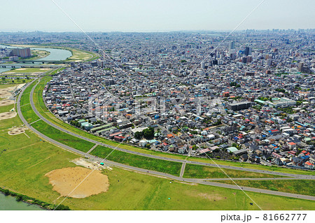 江戸川上空かあ空撮した東京の下町