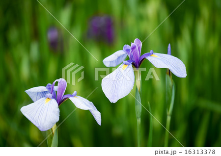初夏の公園 綺麗に咲く花菖蒲の風景