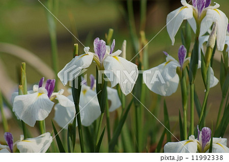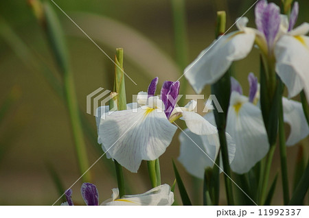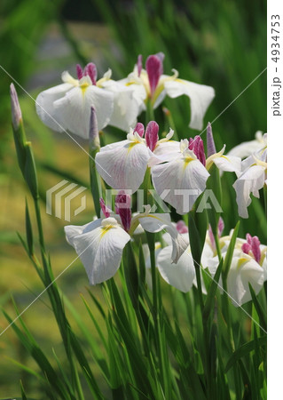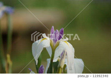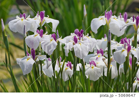 堀切菖蒲園の白地に藍色脈入りの花菖蒲・江戸錦