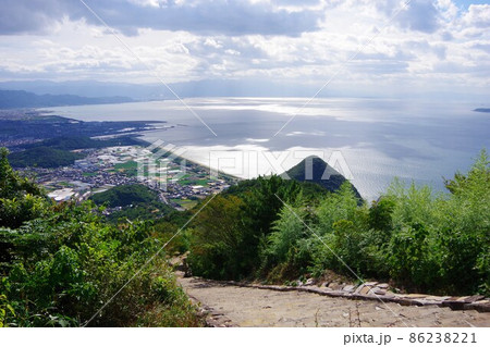 日本 香川県観音寺市の稲積山にある高屋神社の参道から見える瀬戸内海
