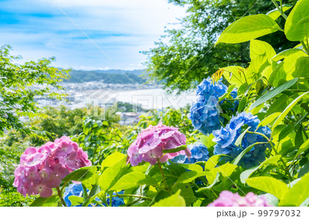 紫陽花が咲き誇る長谷から見た湘南
