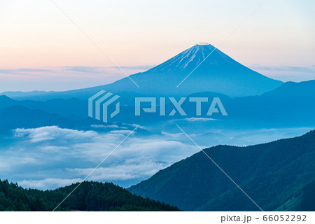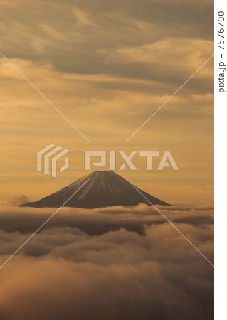 (山梨県)朝焼け・ご来光、雲海に浮かぶ富士山