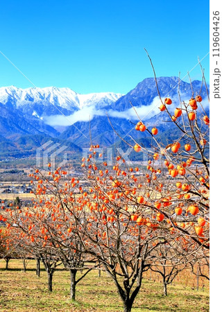 柿の実りと北アルプス