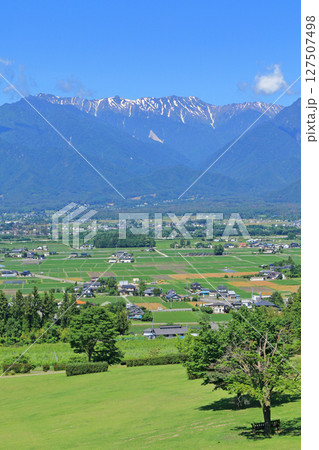 安曇野の5月 あづみ野池田クラフトパークから望む田園と北アルプス