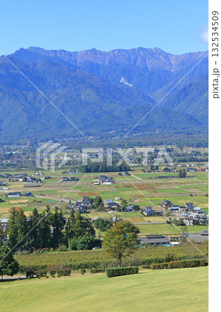 9月の安曇野 田園と北アルプス