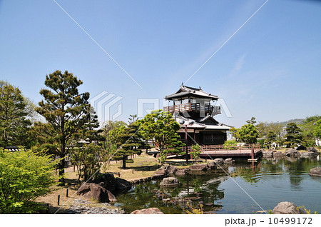 大阪府池田市 池田城跡公園の日本庭園と櫓風展望休憩舎