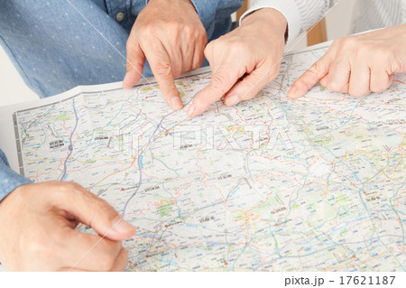 地図を指差すシニア夫婦