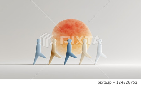 Abstract Representation of Human Figures in Motion Against a Soft Sunset Background in Pastel Colors