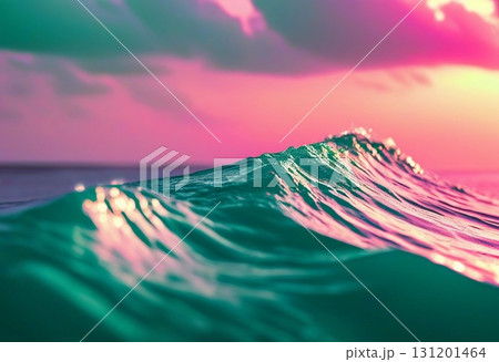Gentle waves rise and fall, reflecting hues of pink and turquoise against a sunset sky. The scene captures the serene atmosphere of a coastal evening Generative AI