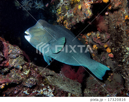 沈船に休むカンムリブダイ