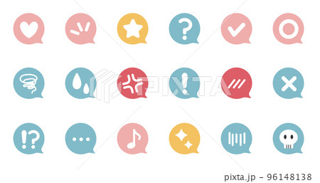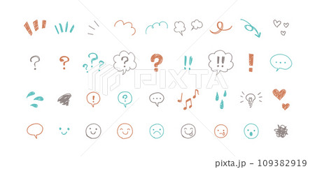 シンプルでかわいい手描きの装飾イラストセット 表情 絵文字 感情 閃き 疑問 表情 お洒落 落書き