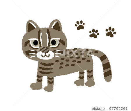 イリオモテヤマネコと足跡の手描きイラスト