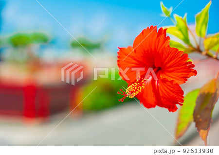 ハイビスカス 沖縄 観光 旅行 青空 アメリカンビレッジ