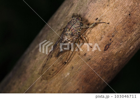 生き物 昆虫 イワサキヒメハルゼミ、八重山諸島特産種。長い産卵管が特徴のメス。メスは鳴きません