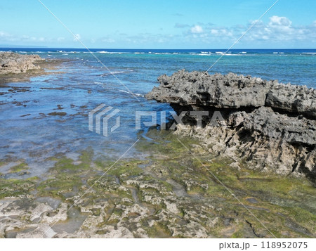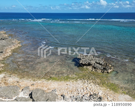 沖縄県うるま市伊計島の天然の岩場の空撮