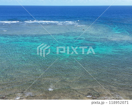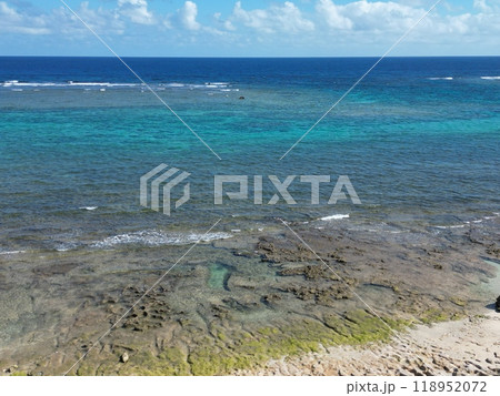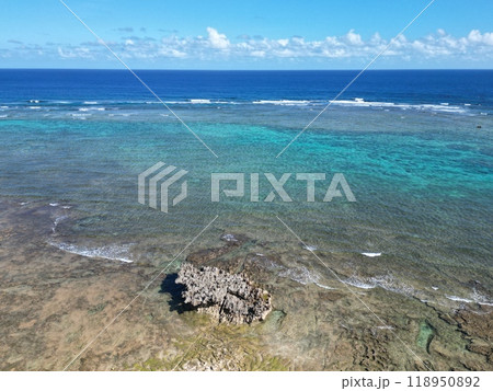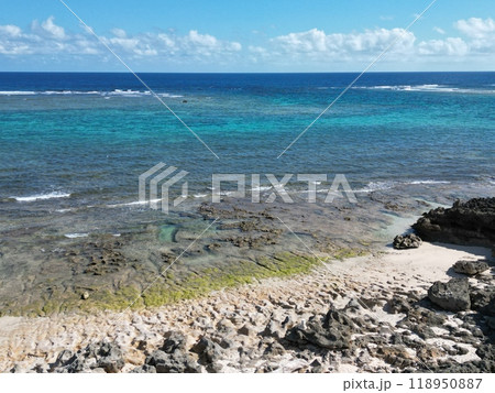 沖縄県うるま市伊計島の手つかずの海岸の空撮