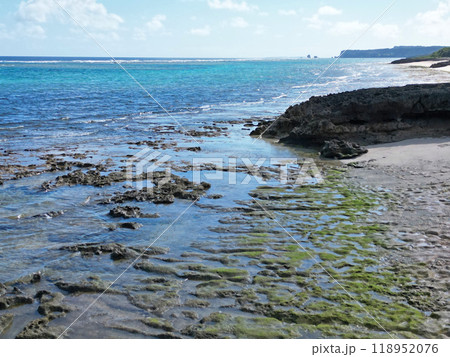 沖縄県うるま市伊計島の手つかずの海岸線の空撮