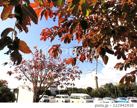 沖縄県総合運動公園の駐車場付近のオオバナサルスベリの紅葉