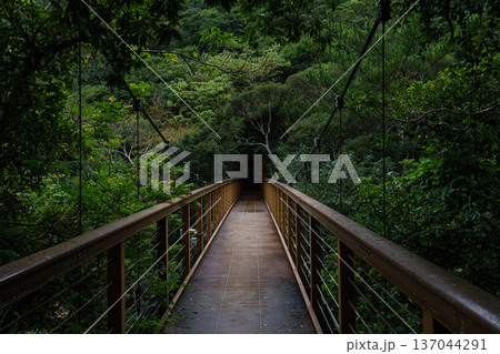 沖縄県 やんばる地方にある比地大滝の吊り橋